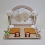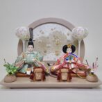 おしゃれなトレンドカラーの淡いモカ色をベースに、32cmという超コンパクトな可愛い親王飾りを製作しました。